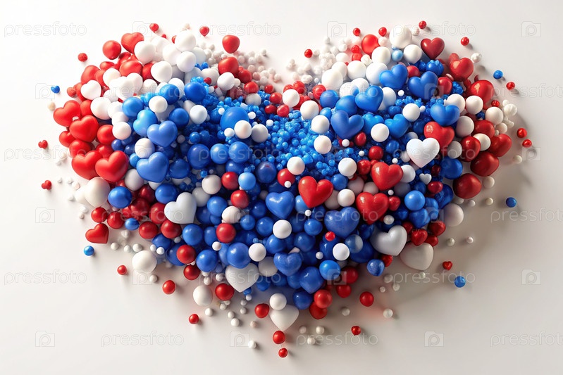 Концепция праздника День России 12 июня. Взрыв цветов в форме сердца, триколор России. Белый, синий, красный. Любовь к Родине