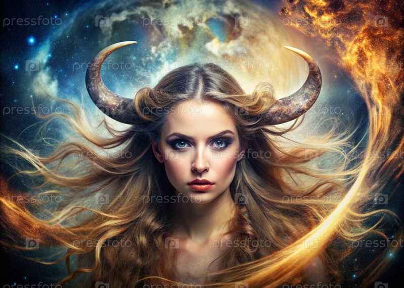 Знаки Зодиака. Астрологический прогноз. Предсказания. Красивая девушка в знаке зодиака Телец. Понятие астрологии и гороскопа. Серия изображений 12 знаков зодиака