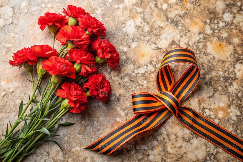 Знамя на 9 мая Красные гвозди и Георгиевская лента на старом фоне Концепция Дня Великой Победы 1941-1945 годов и День защитника Отечества