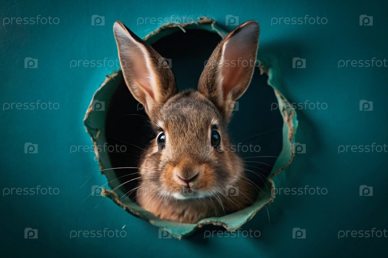 Известный праздник. милый пасхальный кролик заглядывает из разорванной дыры. концепция счастливой Пасхи