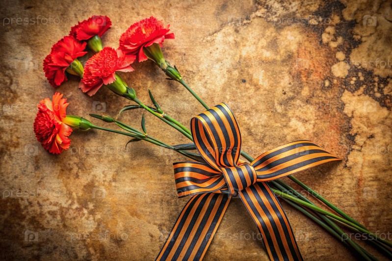 Знамя на 9 мая Красные гвозди и Георгиевская лента на старом фоне Концепция Дня Великой Победы 1941-1945 годов и День защитника Отечества