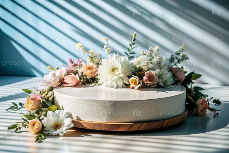 Минимальный фон для демонстрации продукта.Современный яркий подиум с цветами.Креативный дизайн для презентации продукции