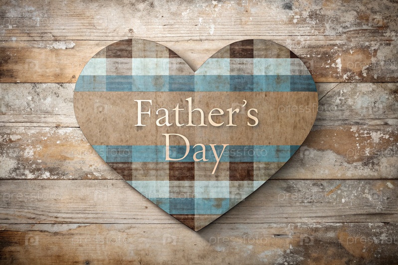 Стильная открытка, баннер на День счастливого отца с деревянным сердцем на винтажном сером, синем и коричневом деревянном фоне