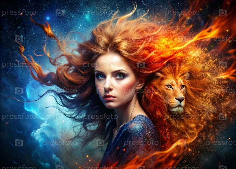 Знаки Зодиака. Астрологический прогноз. Прогнозы. Красивая девушка в знаке Льва. Понятие астрологии и гороскопа. Серия изображений 12 знаков зодиака