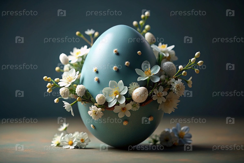 Концепция яркого пасхального праздника минималистична - это синее пасхальное яйцо с нежными белыми вишневыми цветами на голубом фоне