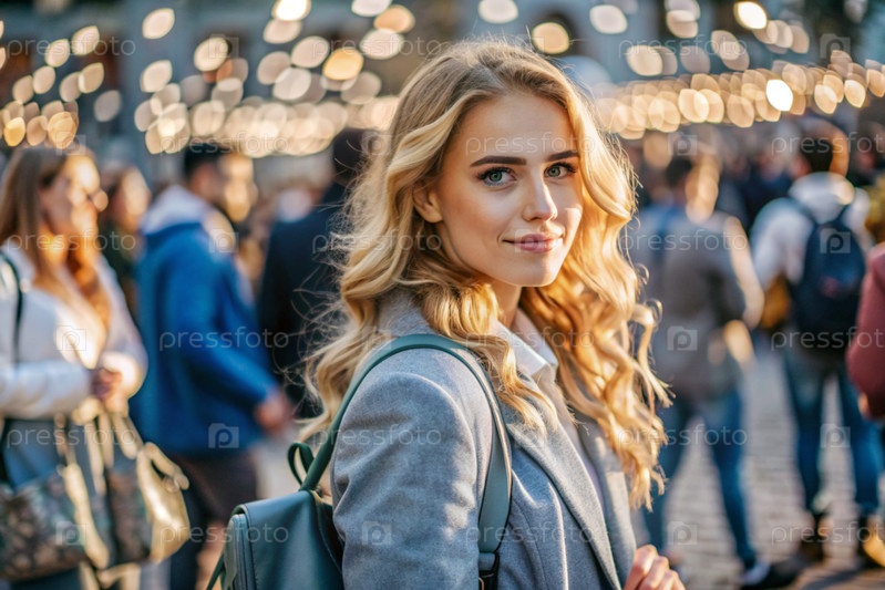 Портрет счастливого красивого путешественника с рюкзаком в городе против прекрасного боке. Путешествие в одиночку, образ жизни. Молодой турист наслаждается отдыхом