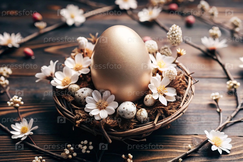 Пасхальный баннер. Концепция яркого пасхального праздника. Необычное деликатное пасхальное яйцо с нежными белыми цветами