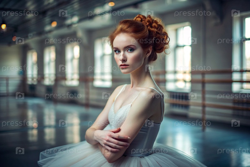 Портрет красивой молодой балерины в балетном зале, сияние русского балета, балерина в туту на фоне репетиционного зала