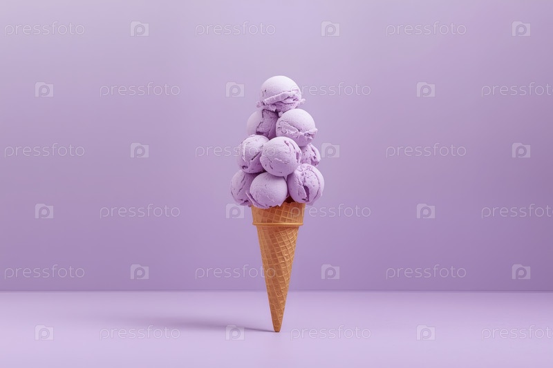 Фиолетовый конус мороженого на фиолетовом фоне. Минимализм. Ванильное мороженое. Баннер, реклама. Всемирный день мороженого