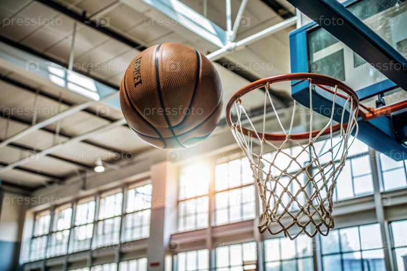 Баскетбол летит в кольцо на баскетбольной площадке