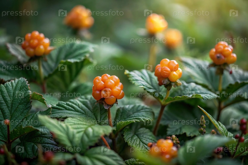 Cloudberry - вкусная северная ягода, которая растет в болоте, собирает спелые клубники из леса