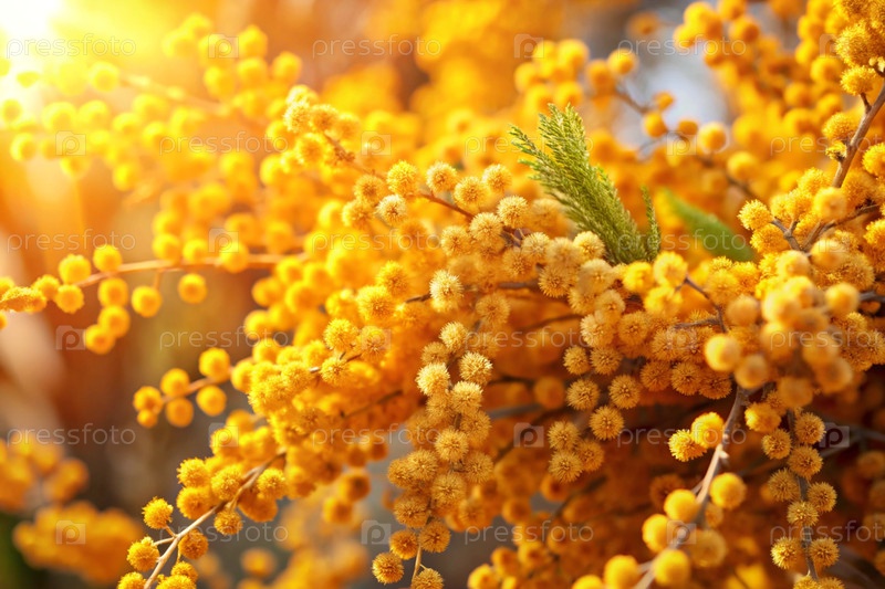 Красивый пушистый букет мимозы в вазе. Близко. Концепция домашней весны и Международный женский день 8 марта