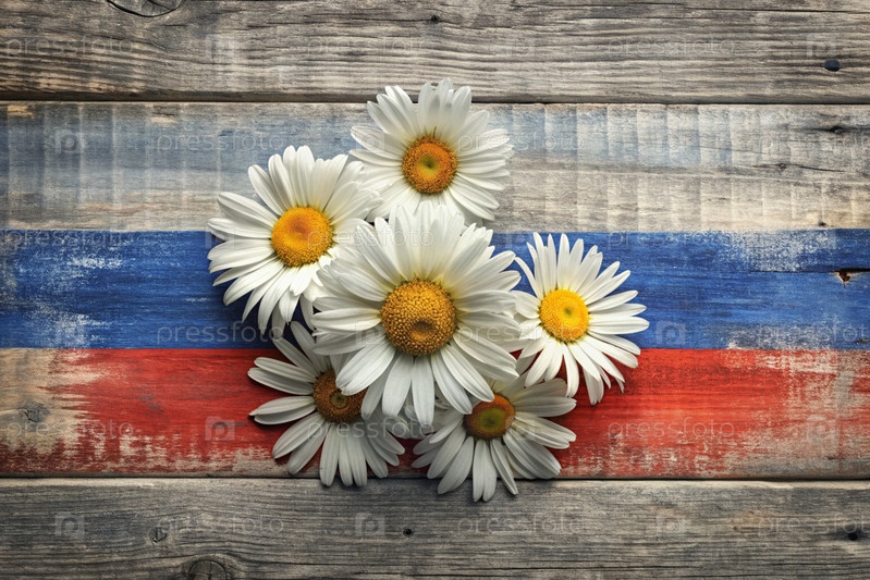 Всероссийский день семьи, любви и верности.Дейзи - букет ромашки с лентой трехцветного цвета России. День святого Валентина Петра и Февронии