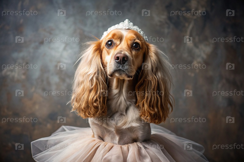 Красивый портрет милой имбирной собаки, одетой в розовое туту