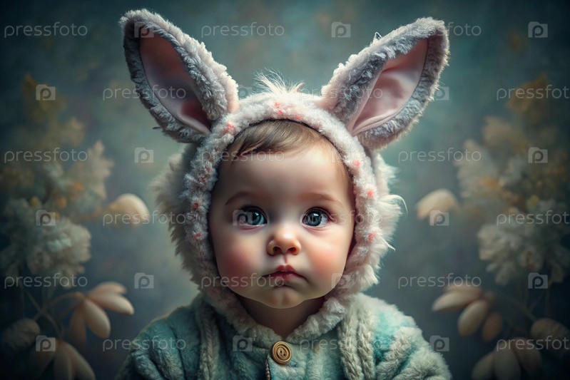 Баннер. Винтажная открытка. Девушка в костюме пасхального кролика с милыми ушами. Концепция праздника Bright Easter Spring