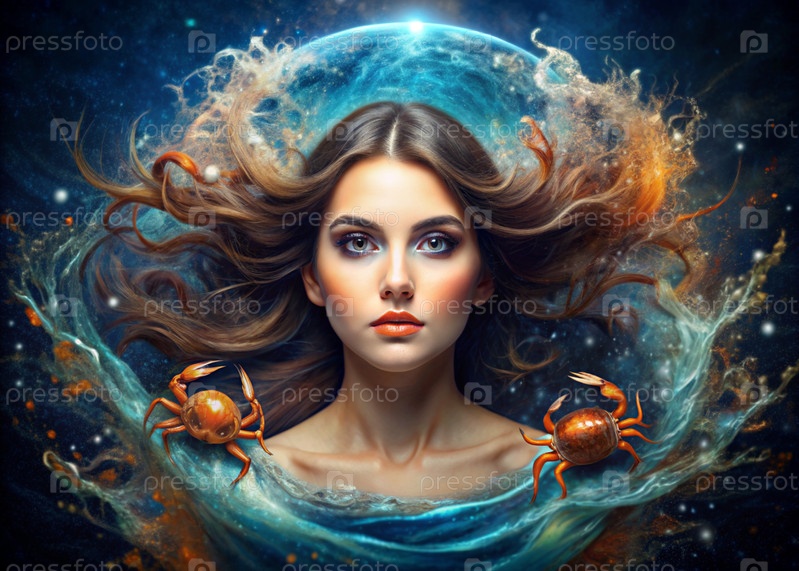 Знаки зодиака. Астрологический прогноз. Прогнозы. Красивая девушка в знаке Зодиака Рак. Понятие астрологии и гороскопа