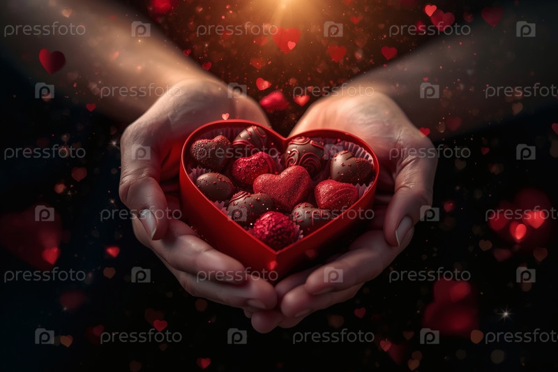 Руки женщины с подарком в форме сердца с шоколадом на День святого Валентина