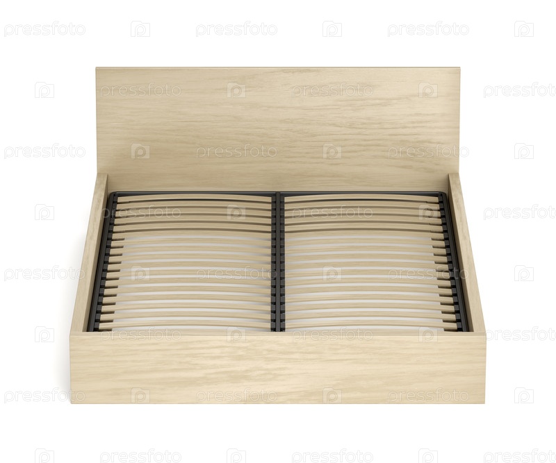 Деревянная кровать на белом фоне