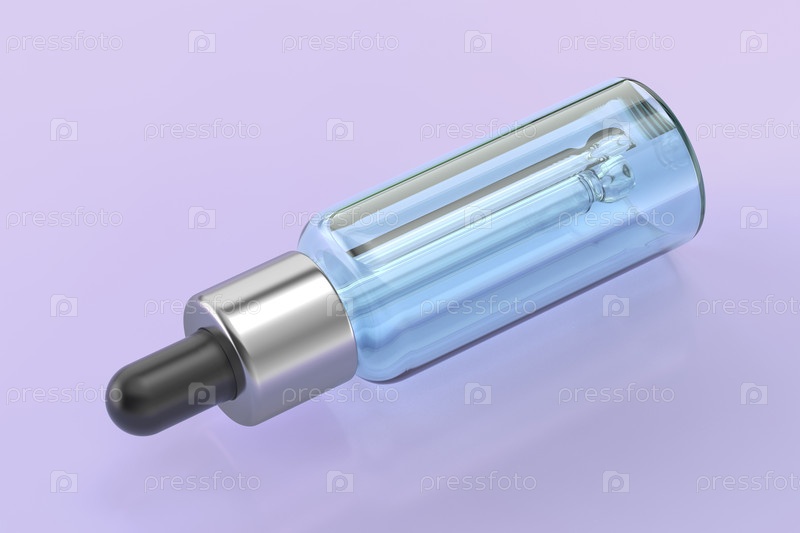 Стеклянная бутылка капельницы с синей жидкостью внутри