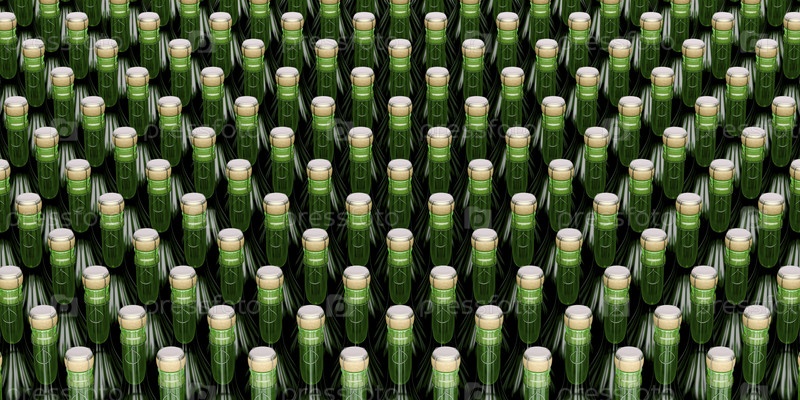 Ряды с бутылками шампанского