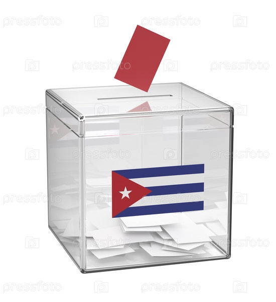 Прозрачные избирательные урны с национальным флагом Кубы