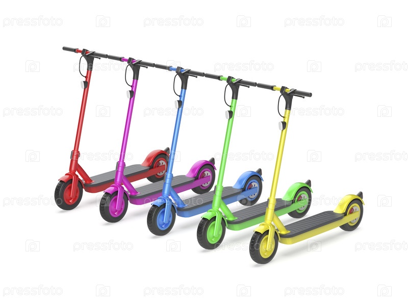 Роу с пятью электрическими скутерами разных цветов