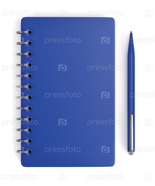 Синий спиральный блокнот и ручка