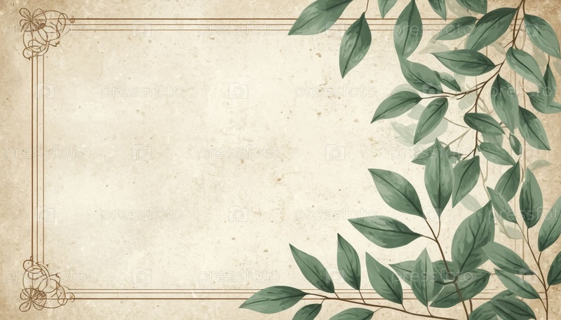 Винтажный фон с рамой и бледно-зелеными границами листьев