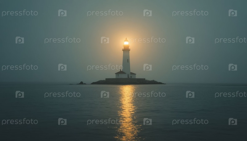 Минималистский морской пейзаж с одиноким маяком на море