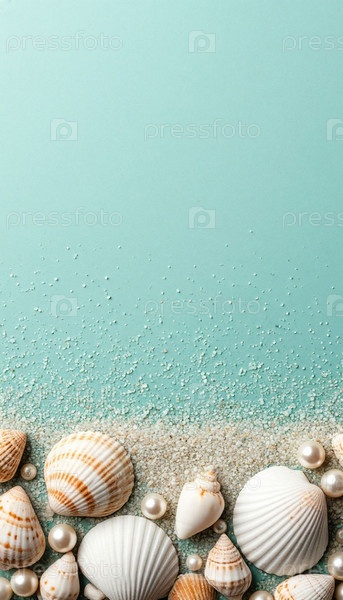 Раковины на пастельно-серо-синем минималистическом фоне
