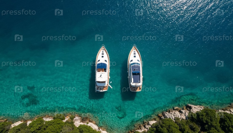 Две рыбацкие лодки в море, вид сверху