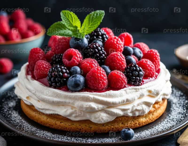Воздушный торт со сливком и ягодами
