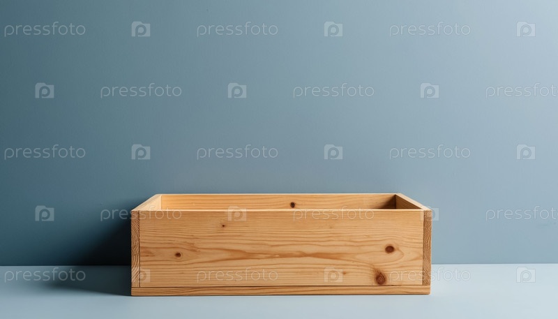 Пустой деревянный ящик на синем фоне