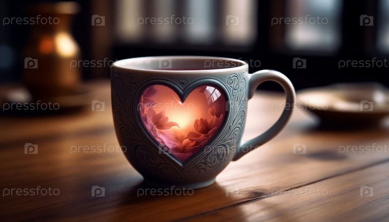 Цветочный чай в керамической кружке с прозрачным окном сердца, романтическая концепция