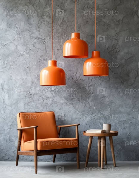 Оранжевая лампа над сидячей зоной против серой стены