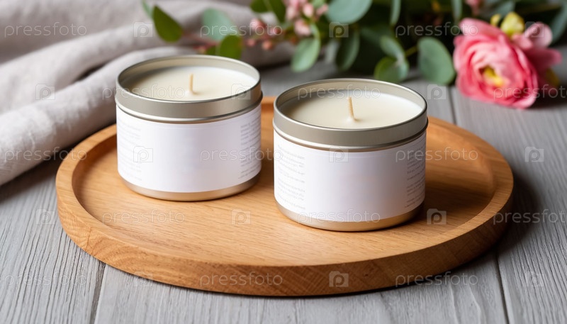 Белые декоративные свечи на деревянном подставке