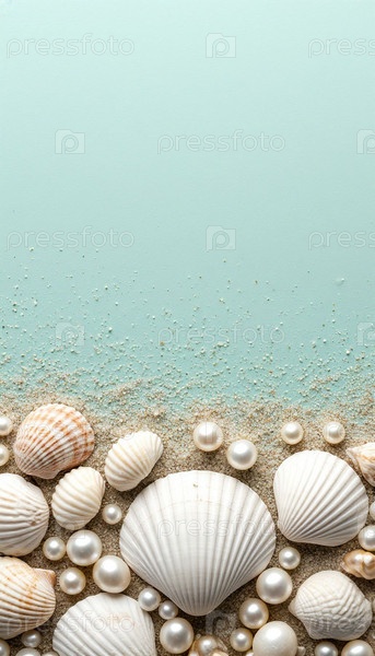 Раковины на пастельно-серо-синем минималистическом фоне