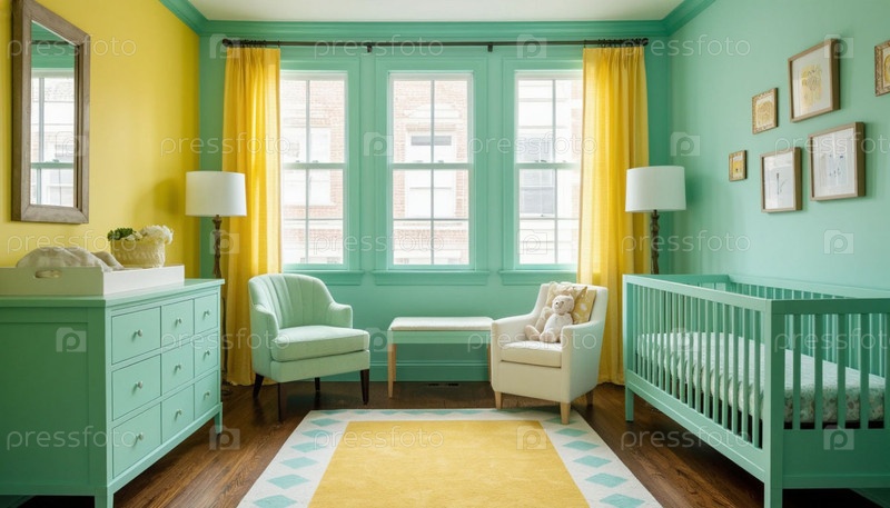 Детский сад в пастельных цветах желтого и мятного