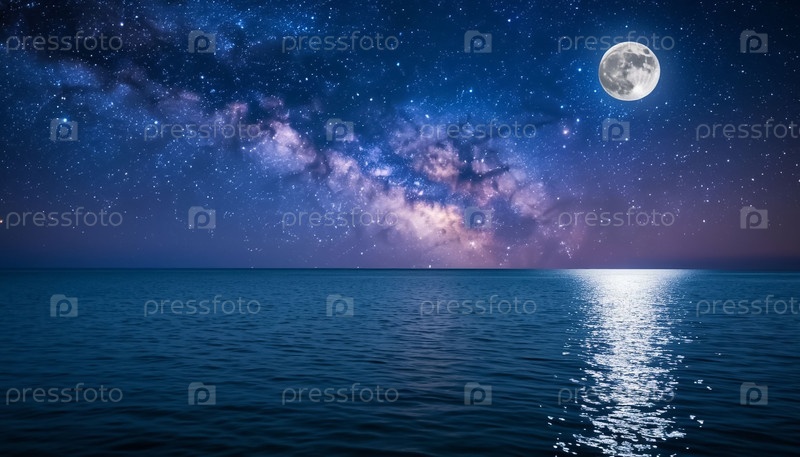 Луна светит над океаном и лунный путь на воде