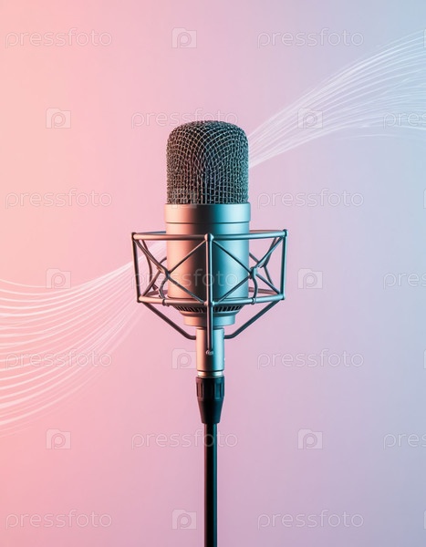 Музыкальный фон с микрофоном и звучанием прозрачных волн в пастельных тонах