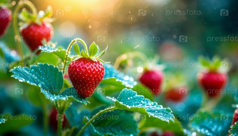 Ягоды в саду после дождя. генерация ИИ