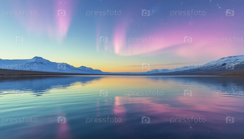 Нежное северное сияние над поверхностью воды