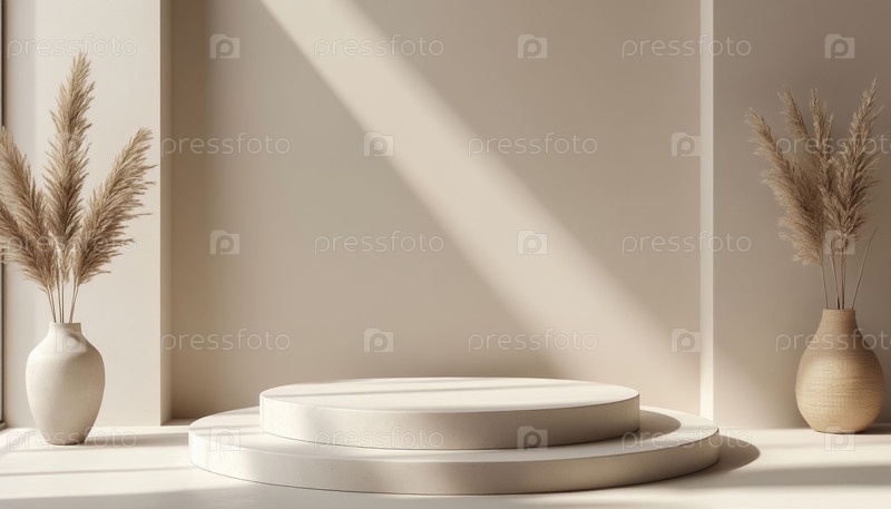 Современный подиум дисплей на сером бежевом текстуре фоне абстракт