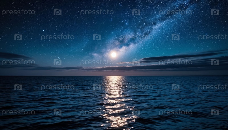 Луна светит над океаном и лунный путь на воде
