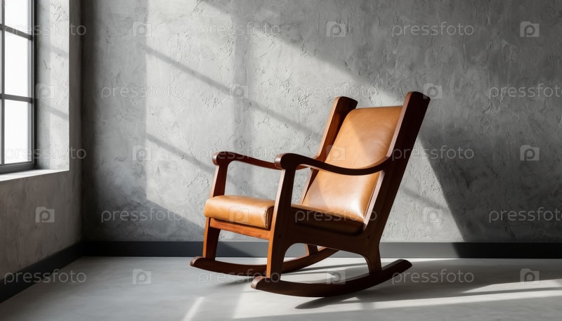Деревянный качальный стул в пустой серой комнате