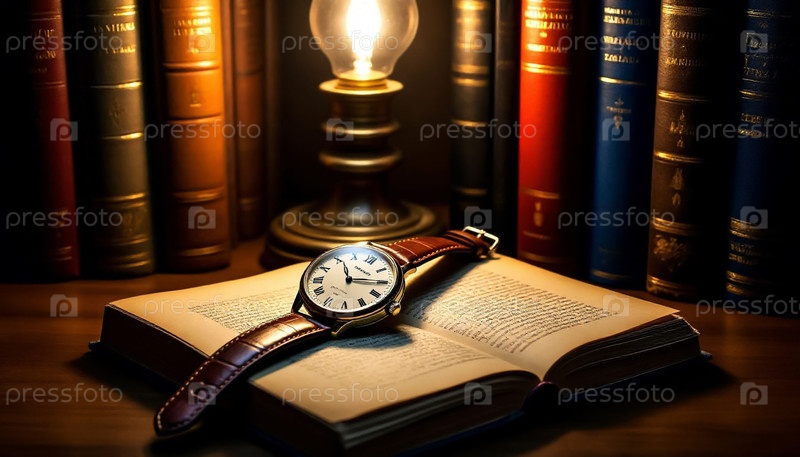 Оригинальное название Pocket Watch Books Lamp Still Life