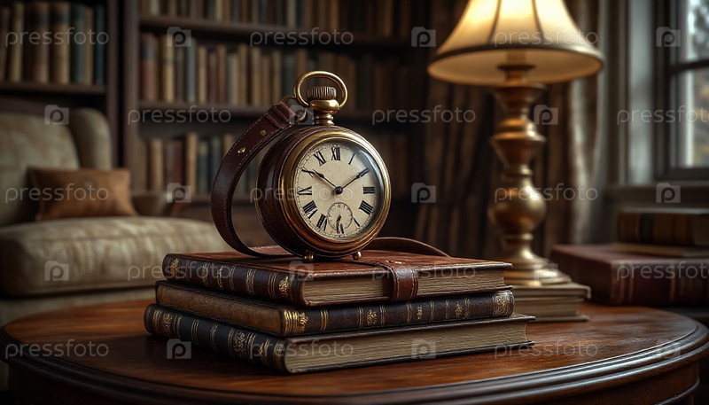 Оригинальное название Pocket Watch Books Lamp Still Life