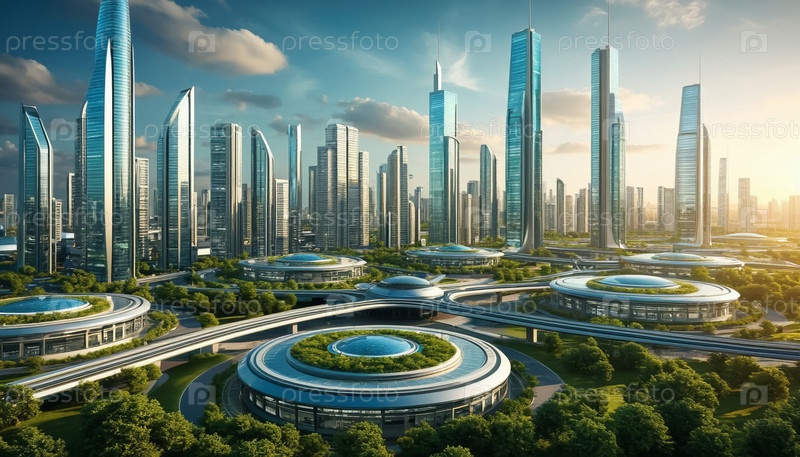 Футуристический город будущего с порталами между домами