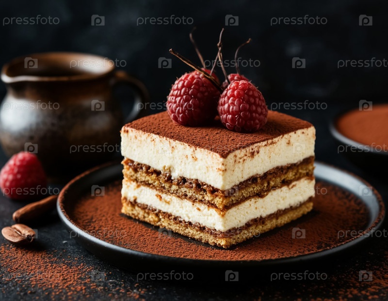 Пирог тирамису на темном фоне
