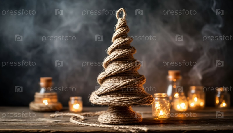 Новогодняя елка из конопляной веревки - экологически чистый декор на темном фоне